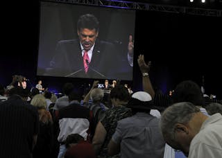 En août 2011, plus de 30 000 personnes ont applaudi sauvagement le candidat à la présidence des États–Unis et gouverneur du Texas Rick Perry – maintenant secrétaire à l’énergie dans l’administration Trump – au centre de la scène lors de « The Response: A Call to Prayer for a Nation in Crisis » au Reliant Stadium de Houston. Perry a cité la Bible et a prêché sur le besoin de salut qui vient de Jésus. Il a conclu par une prière pour un pays qu’il croyait submergé par les problèmes: